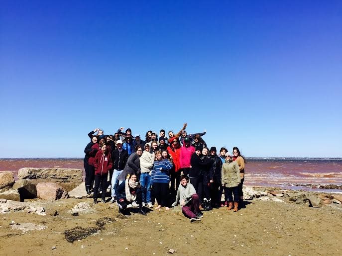 There is just something peaceful about the ocean…standing on the wet sand surrounded by the cool Maritimes’ wind, time has a way of standing still in that moment. The Caraquet bay is truly one of the most beautiful bays in the world. It is the perfect setting to sit back and relax or take a great group photo! Here in Caraquet, New Brunswick, the capital of Acadie, the town is known for the fishery industry and its popular French theatre! The artistic french culture of Caraquet was the particular draw for the group of young individuals I had the pleasure of touring with as we headed to the annual “Festival du Theatre Jeunesse en Acadie”. The Theatre Populaire d’Acadie host the event as well as many others throughout the year. For the last 18 years, primary and secondary schools’ theatre groups from around the province of New Brunswick head off to Caraquet to perform their theatre pieces as well as participating in multiple workshops lead by local professionals. Our group came from a French high school in Ottawa but the festival was open to receiving them as special guests! The Cultural Centre of Caraquet hosts the event, located in the center of the town. Once the festival was over, the group had a wonderful opportunity to walk along the beach, collect seashells and enjoy the coastal air.